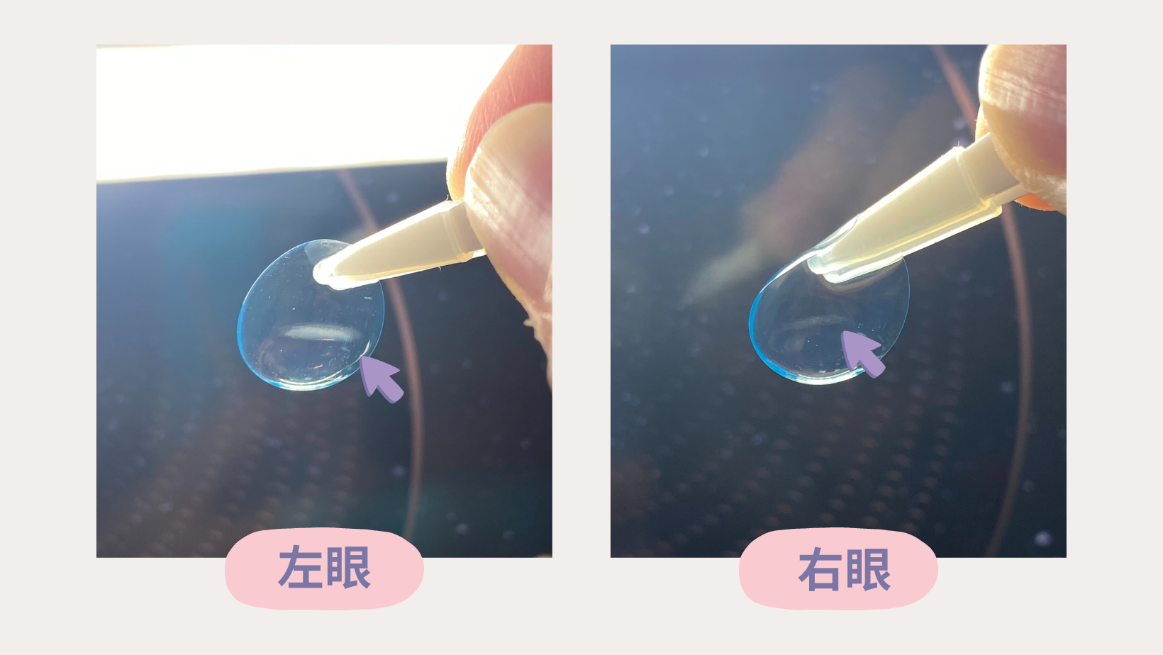 對著燈光,很明顯可以看到鏡片的中心稍偏下的地方,有一條白白的沉澱物,而且兩眼的鏡片都發生在差不多的位置。在我用隱形眼鏡保養液反覆搓洗後,這個沉澱物依然存在,沒有被清除。